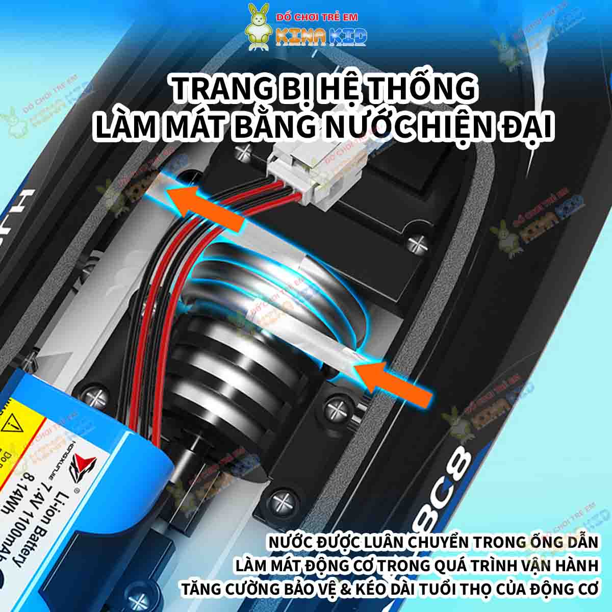 - Thiết kế động cơ: mottor 370, làm mát bằng nước, tốc độ lên đến 25 km/h.