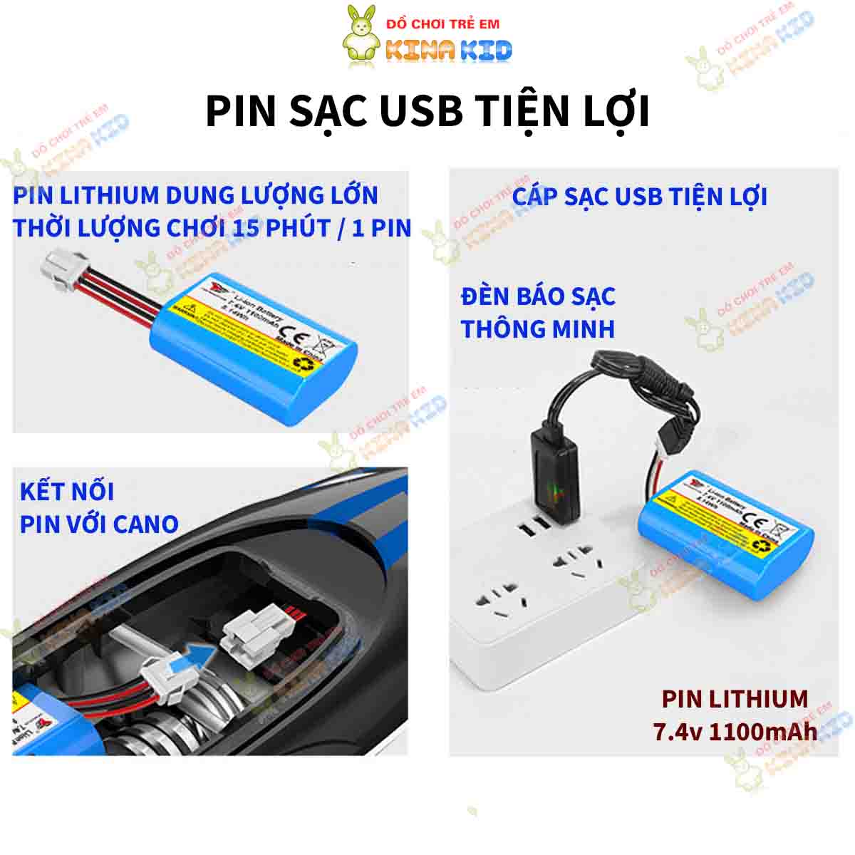 - Pin dung lượng lớn 7.4V 1100mAh.