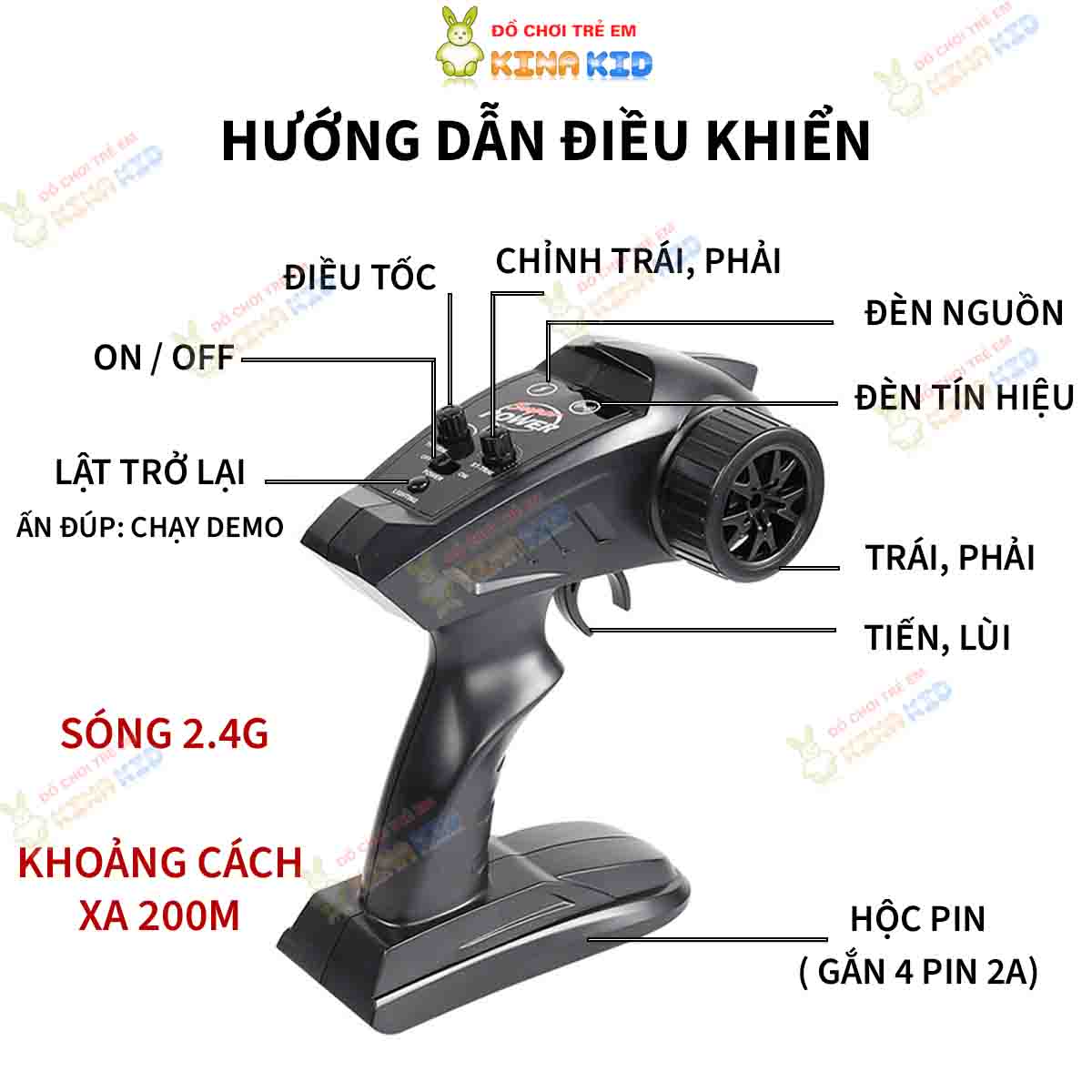- Điều khiển từ xa bằng sóng 2.4G, hỗ trợ chơi nhiều phương tiên chơi cùng lúc.